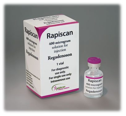 Regadenoson (seçici bir A 2A adenosin reseptör agonisti), güvenlik profili ve kullanım kolaylığı nedeniyle stres MPI için yaygın olarak kullanılan bir vazodilatör ajandır. Baş ağrısı, nefes darlığı, kızarma ve göğüs ve karın rahatsızlığı gibi yaygın advers reaksiyonlar tipik olarak hafiftir ve aminofilin ve kafein gibi metilksantinler kullanılarak etkili bir şekilde tersine çevrilebilir.
