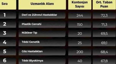 2023-TUS 1. Dönem yerleştirme sonuçları açıklandı. Sonuçların açıklanması ile TUS’ta en çok tercih edilen branşlar da belli oldu. Önceki senelerde de olduğu gibi Dermatoloji ve Plastik Cerrahi gibi branşlara talep […]